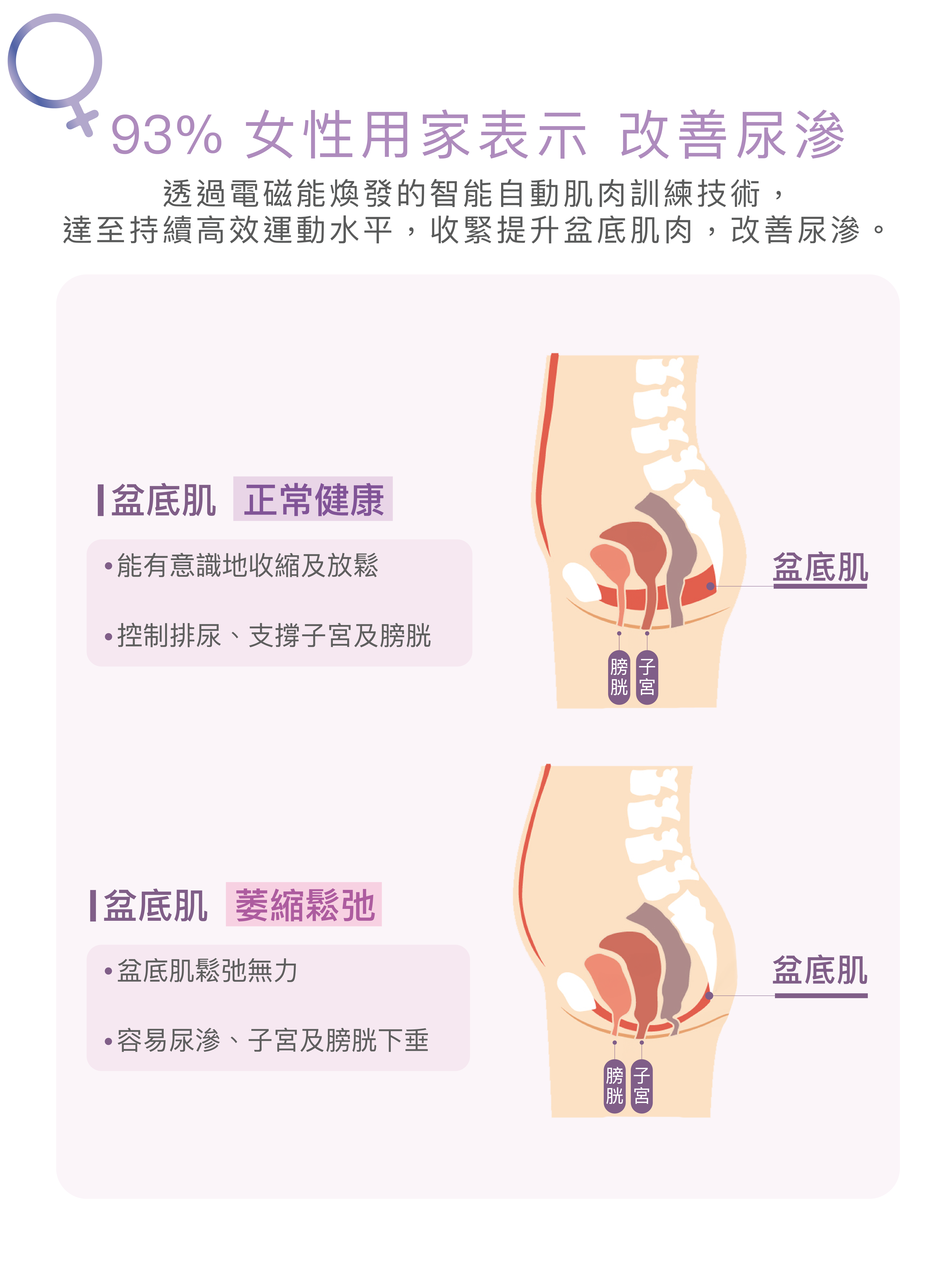 利用電磁能收縮信號,觸發盆底肌收縮 一次治療 = 進行了20,000次收縮鍛煉