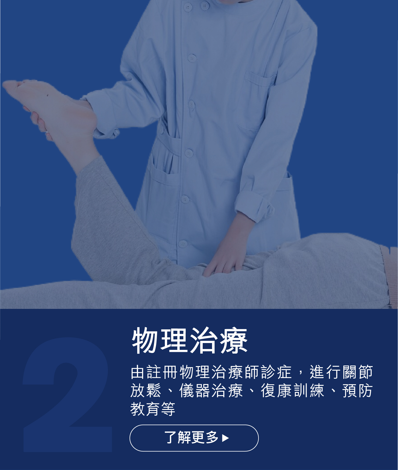 擁有經驗豐富的痛症團隊,以物理治療、中醫、脊醫、伸展、牽引、醫療級痛症儀器為主要治療,向急性及慢性痛症的患者提供多元化的治療方案,為大眾健康盡心盡力,回復健康人生。